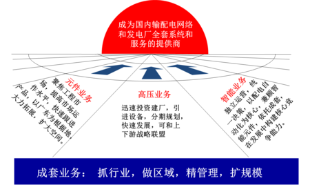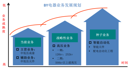 1、BY電器需以中低壓成套和中低壓元件為當(dāng)前主營業(yè)務(wù),并確立以高壓為戰(zhàn)略性業(yè)務(wù),以智能自動(dòng)化為種子業(yè)務(wù)的業(yè)務(wù)規(guī)劃,讓BY電器未來可持續(xù)性發(fā)展。