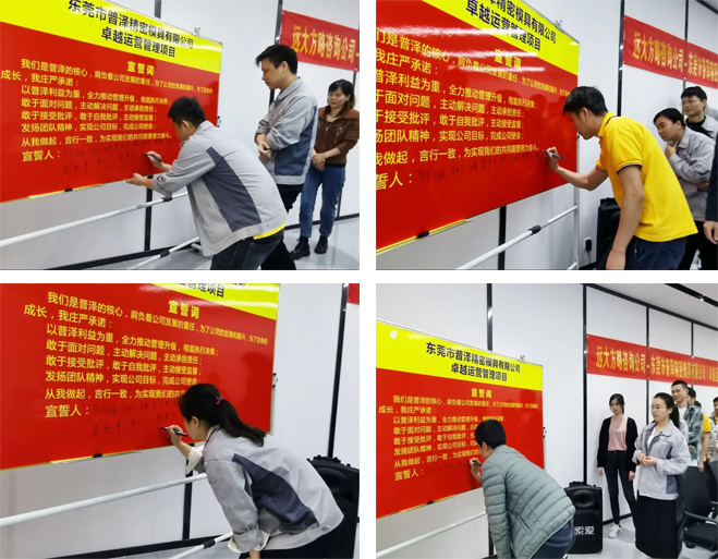 王總還對遠大方略項目組進行了授權,為公司的項目團隊頒發了任命書,帶領大家簽訂誓言后集體宣誓,進一步鼓舞了公司上下投身變革的信心。
