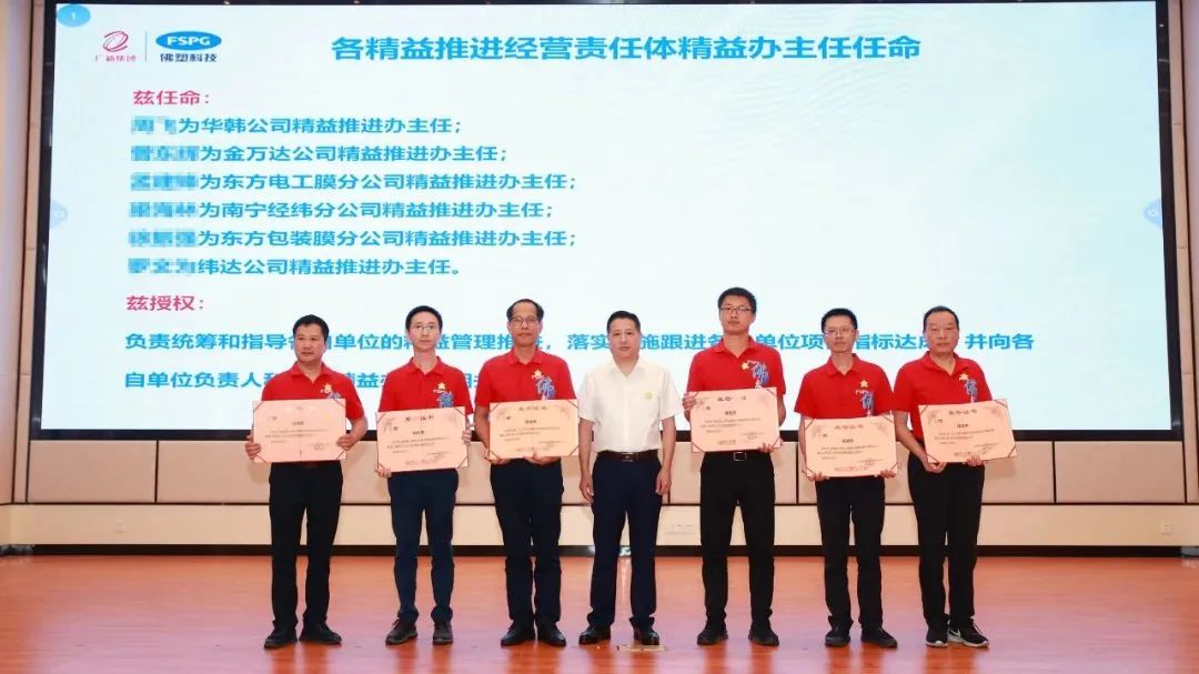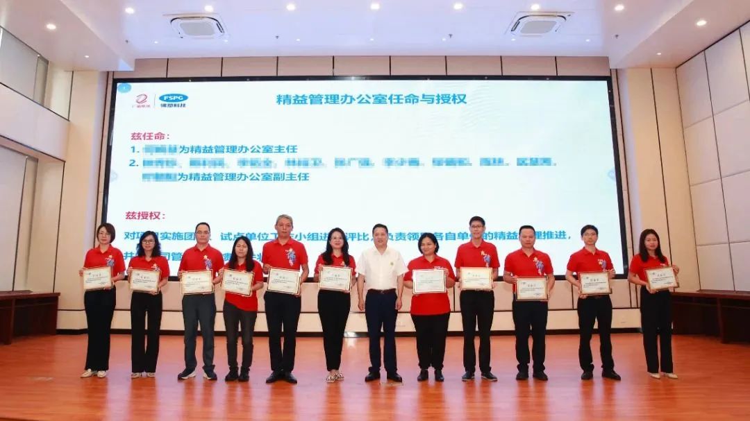 會議上,佛塑科技精益辦主任何婉慧發布精益二期項目組織架構和項目管理機制。公司黨委副書記、工會主席葉志超為項目老師和項目相關負責人頒發了授權任命書,公司黨委副書記、總裁馬平三向各重點推進單位頒發項目目標責任狀。全員參與,全力推動精益管理變革。