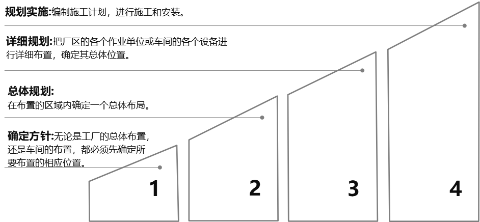 我們主要選取具代表性的布局方法--系統布置設計SLP法,通過如下階段的策劃與落地來開展項目: