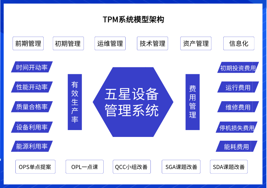 設(shè)備前期管理、設(shè)備初期管理、 設(shè)備運(yùn)維管理、設(shè)備技術(shù)管理、 設(shè)備資產(chǎn)管理、 設(shè)備信息化管理。