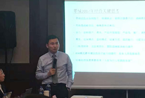 2017年3月,翠綠珠寶開啟了與遠大方略進一步的合作,此次為遠大方略與翠綠珠寶的第二次戰略合作。遠大方略公司咨詢師雷志軍老師、遠大方略咨詢師徐利斌老師、夏繼榮老師、翠綠首飾制造有限公司黃總及翠綠珠寶中高層管理人員共同參加了經營管理改善第二期的會議。第二期合作將更好的構建與落實2017年年度經營規劃,聯手為翠綠珠寶打造一支有競爭力的核心團隊,為客戶、股東、員工創造更大的價值,促進企業健康可持續發展。