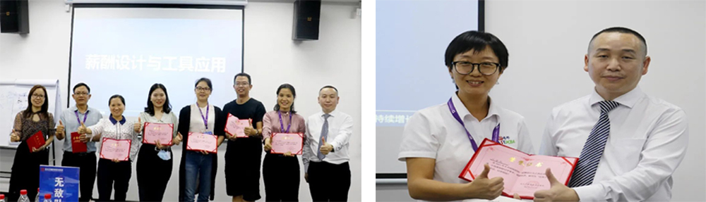 整個課堂,實用工具和理論相結合,學員們現場運用工具結合企業實際進行薪酬機制制定,與老師現場交流溝通讓學習成果更加落地生效。課程結束后,老師為優秀小組和優秀個人頒發了證書和禮物。