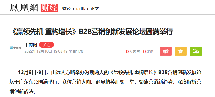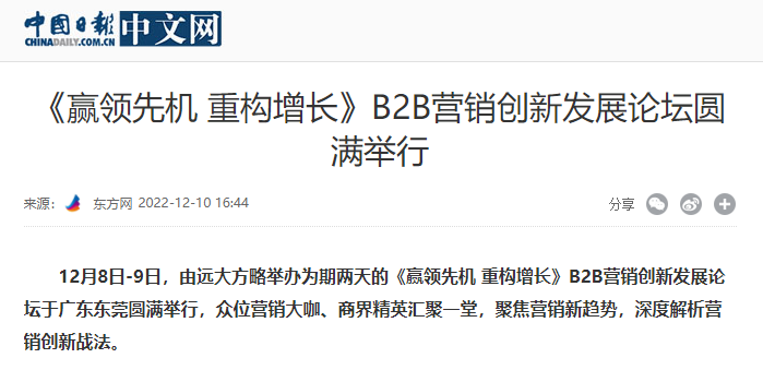 12月8日-9日,由遠大方略舉辦為期兩天的《贏領先機 重構增長》B2B營銷創新發展論壇于廣東東莞圓滿舉行,眾位營銷大咖、商界精英匯聚一堂,聚焦營銷新趨勢,深度解析營銷創新戰法。