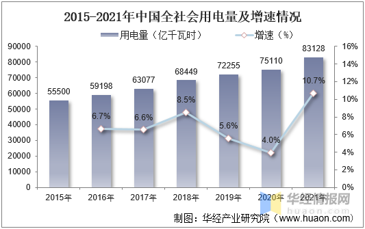 電力行業是電線電纜行業最主要的應用領域,近年來,我國全社會用電量不斷增長,推動了我國電線電纜需求的增長。據資料顯示,2021年我國全社會用電量達83128億千瓦時,同比增長10.7%。
