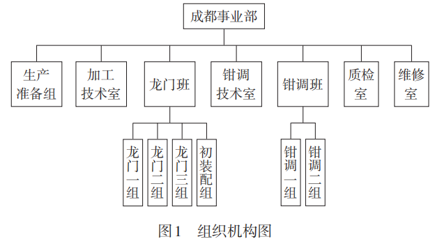 成都事業(yè)部由4個(gè)科室及3個(gè)班組組成(見圖1)。共計(jì)76名員工。