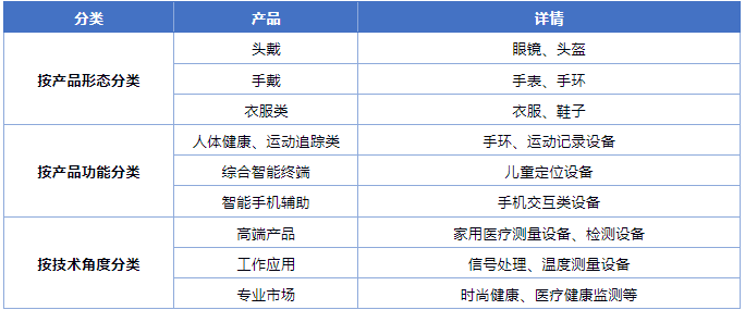 智能穿戴設(shè)備是指將智能和先進(jìn)技術(shù)整合到手表、珠寶等可穿戴對(duì)象中,具體產(chǎn)品包括智能手表、VR耳機(jī)、健身追蹤器、智能腕帶、智能珠寶、運(yùn)動(dòng)手表、可植入設(shè)備等。