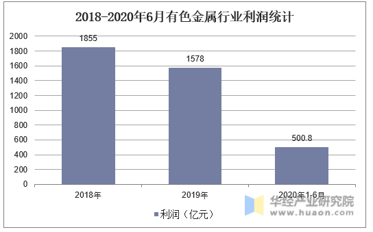 2018-2020年6月有色金屬行業利潤統計
