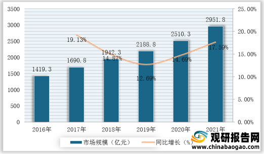 傳感器是一種檢測元件,能感受到被測量的信息,并能將感受到的信息,按一定規律變換成為電信號或其他所需形式的信息輸出,以滿足信息的傳輸、處理、存儲、顯示、記錄和控制等要求。根據數據顯示,2019年我國傳感器市場規模為2188.8億元,2020年我國傳感器市場規模為2510.3億元,同比增長14.69%;預計2021年我國傳感器市場規??蛇_2951.8億元。