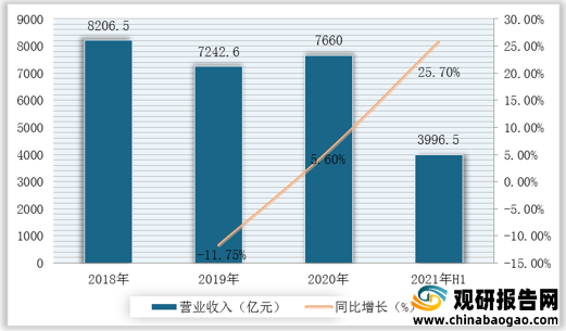 2018-2021年H1儀器儀表制造業營業收入及增速