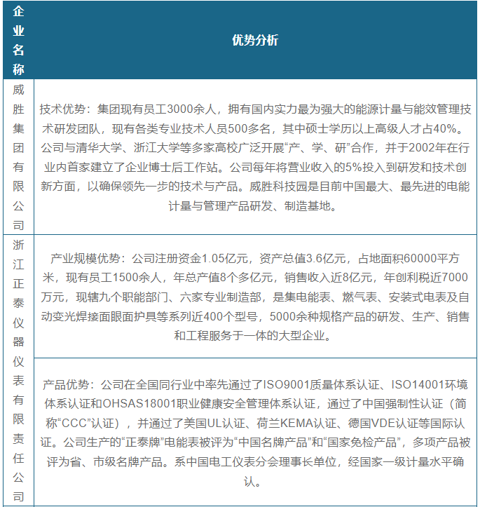 現階段,我國智能儀器儀表行業產業鏈中游優秀企業主要包括威勝集團有限公司、浙江正泰儀器儀表有限責任公司、寧波三星醫療電氣股份有限公司、中航電測、漢威科技、柯力傳感等。
