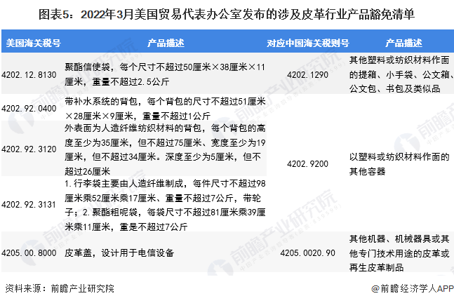 2022年3月23日,美國貿易代表辦公室宣布,將恢復352項自中國進口商品的加征關稅豁免,其中涉及3項對應中國海關稅號的皮革行業產品,該規定將適用于2021年10月12日至2022年12月31日之間進口自中國的商品。該關稅豁免涉政策利好我國皮革產品出口,國內皮革行業出口市場有望回溫。
