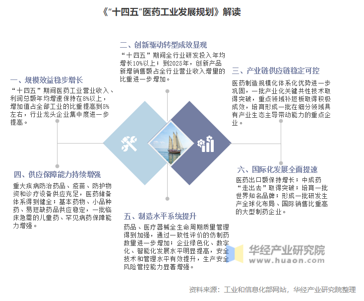 面對(duì)國內(nèi)外新形勢(shì)發(fā)展,為推動(dòng)我國醫(yī)藥工業(yè)向創(chuàng)新驅(qū)動(dòng)轉(zhuǎn)型,促進(jìn)我國醫(yī)藥工業(yè)高質(zhì)量發(fā)展,依據(jù)《中華人民共和國國民經(jīng)濟(jì)和社會(huì)發(fā)展第十四個(gè)五年規(guī)劃和2035年遠(yuǎn)景目標(biāo)綱要》,2022年1月30日,工業(yè)和信息化部等九部門聯(lián)合編制了《“十四五”醫(yī)藥工業(yè)發(fā)展規(guī)劃》。