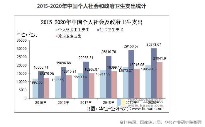 近年來,我國醫(yī)療資源不斷豐富,醫(yī)療技術(shù)水平不斷提升,衛(wèi)生支出總體呈上升趨勢(shì),2020年全國衛(wèi)生總費(fèi)用預(yù)計(jì)達(dá)72306.4億元,占GDP百分比為7.12%,個(gè)人衛(wèi)生支出為2萬億元左右。社會(huì)衛(wèi)生支出大概3萬億元,政府衛(wèi)生支出2.2萬億元。衛(wèi)生支出費(fèi)用持續(xù)增長(zhǎng),醫(yī)藥制造行業(yè)需求市場(chǎng)發(fā)展空間廣闊。