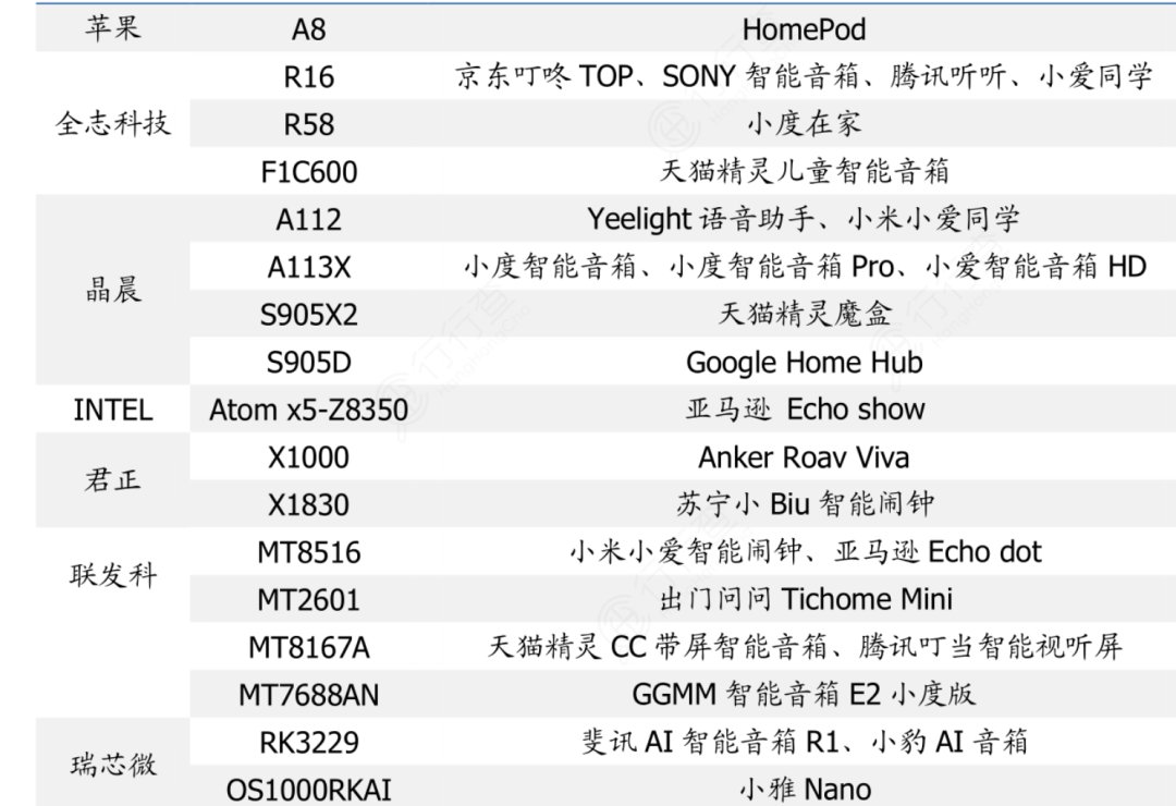 主流智能音箱主控芯片概覽: