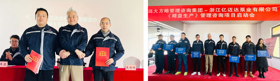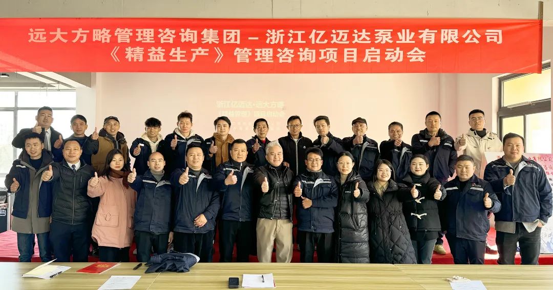 持續改善,追求卓越,浙江億邁達泵業有限公司(以下簡稱“億邁達泵業”)攜手遠大方略啟動《精益管理》咨詢項目,全面推行精益管理,建立標準化、規范化的管理制度,以更少的資源投入創造出更大的價值,實現企業效益更大化。