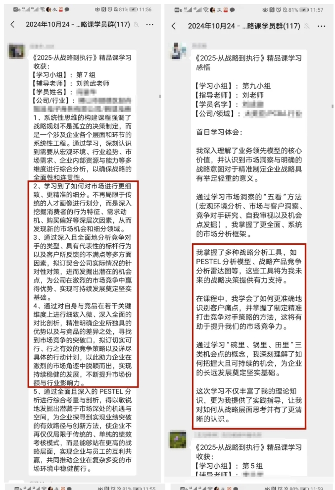 參加此次課程的學(xué)員超百人,來自不同行業(yè)不同企業(yè)的企業(yè)家、高管,更有部分企業(yè)組團(tuán)前來學(xué)習(xí),剖析差距原因,識別增長機(jī)會(huì),達(dá)成戰(zhàn)略共識,助力企業(yè)長效增長。白天的高能課程讓企業(yè)受益匪淺,結(jié)束一天的課程之后,企業(yè)老板都自發(fā)的帶著自己的團(tuán)隊(duì)留下來繼續(xù)深化企業(yè)的戰(zhàn)略方案,從而實(shí)現(xiàn)從0到1的戰(zhàn)略規(guī)劃落地。
