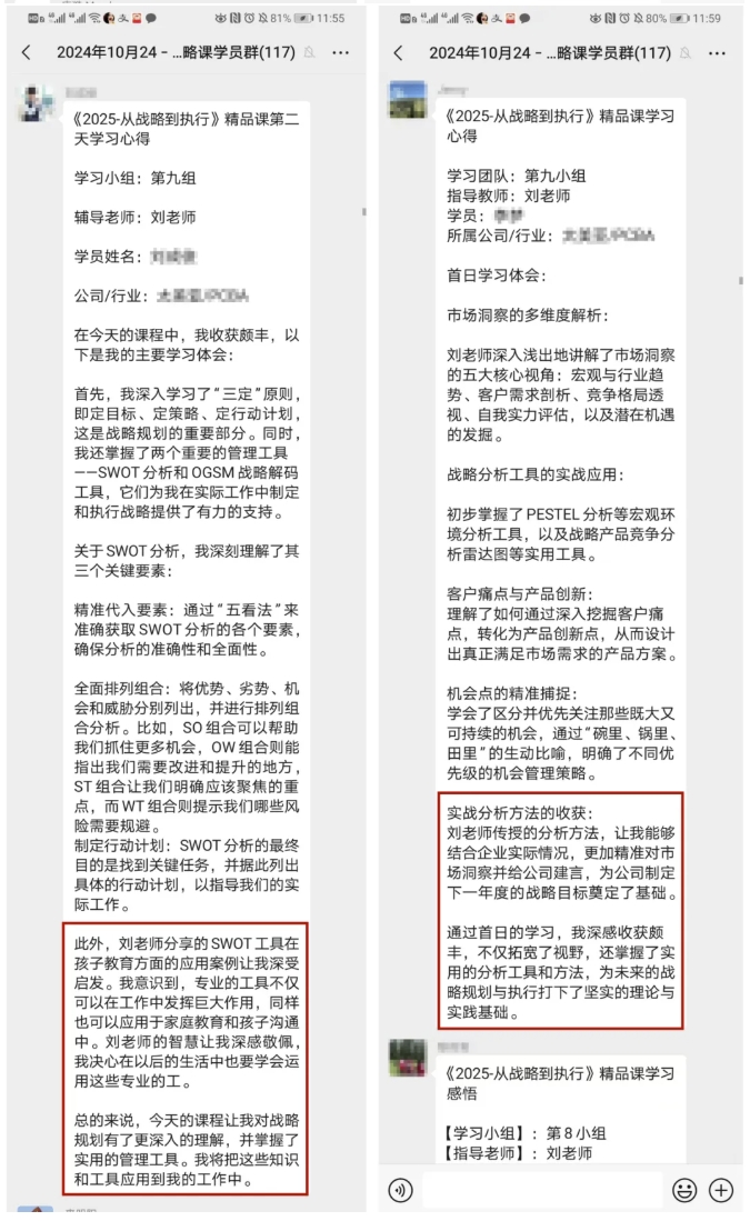 戰(zhàn)略是企業(yè)業(yè)務(wù)運(yùn)行的火車頭,有清晰的戰(zhàn)略才能確保我們有共同的方向,但所謂知易行難,只有可落地、可執(zhí)行的戰(zhàn)略才是真正的戰(zhàn)略。這也是本次課程的一大亮點(diǎn),重實(shí)操,重落地,讓每一位學(xué)員回到企業(yè)都能夠制定一套適合企業(yè)的戰(zhàn)略方案。三天的學(xué)習(xí)全程高能,課程實(shí)用、可落地性強(qiáng),獲得學(xué)員一致好評。