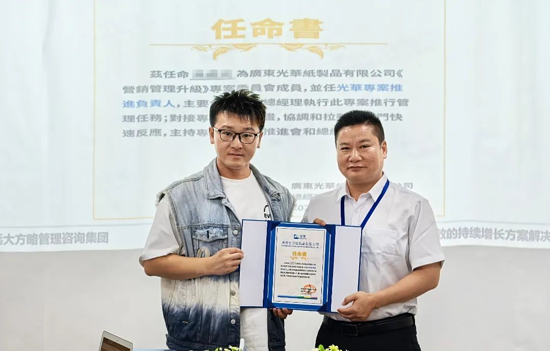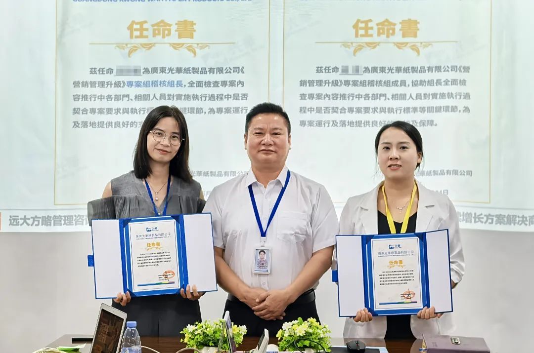 廣東光華紙制品有限公司(以下簡稱“廣東光華”)作為深耕行業多年的港資企業,始終秉持“與時俱進”的拼搏精神,在半個多世紀的發展歷程中不斷突破自我。面對當下市場競爭的新挑戰與客戶需求的新升級,廣東光華主動求變,攜手遠大方略正式啟動《營銷管理升級》咨詢項目,旨在通過系統性的營銷體系優化、專業能力的深度賦能,為企業注入發展新動能,助力企業突破瓶頸,實現可持續增長