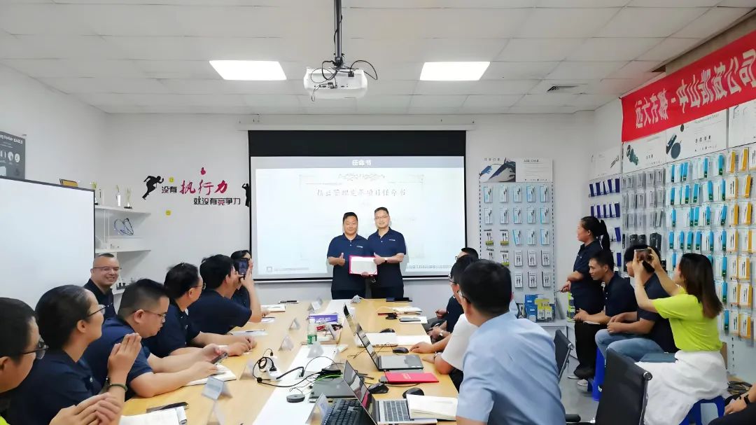 為促進項目的有效落地,此次改善還成立了專項改善小組,明確各崗位職責,強化責任意識,會上王總為遠大方略顧問團頒發授權書,為精益改善小組成員頒發了任命書。
