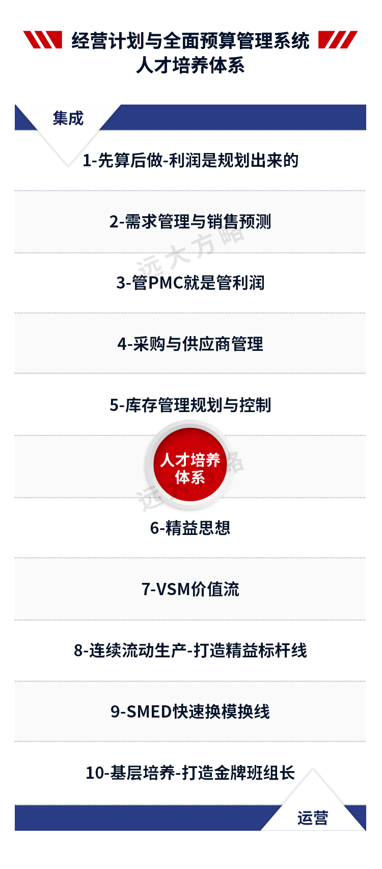 2、輔導模塊:推行卓越運營管理,主要圍繞經營管理中心建立、計劃信息鏈與組織運作信息鏈構建、精益生產模式優化等